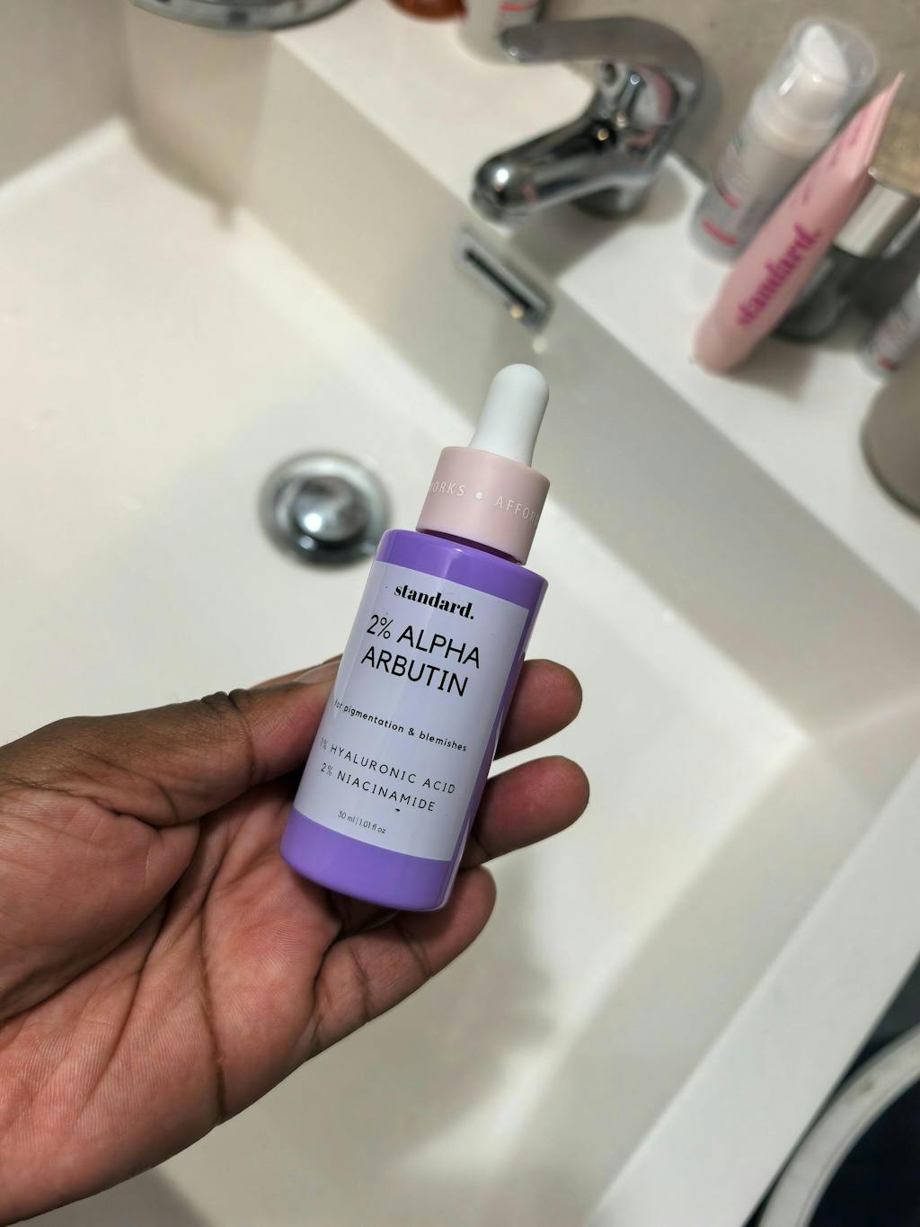 I had these annoying pimples on my face that I couldn't get rid off. I decided to try this Alpha Arbutin serum, at first I was sceptical as I've never used the arbutin before and wasn't sure how it would react with my skin. I have been using for two weeks now and it has cleared my face from those stubborn pimples and I like how it leaves my face feeling moisturized and glowy. I will definitely buy it again, it definitely works and would 100% recommend it!